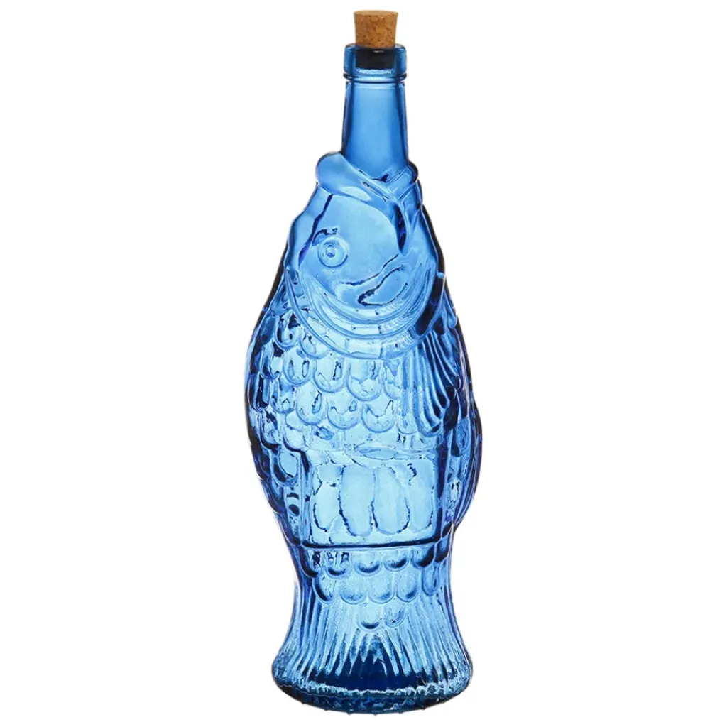 Découvrez notre bouteille en verre recyclé de 1.1L, arborant un design unique inspiré par les poissons bleus. Parfait pour conserver vos boissons préférées tout en préservant l’environnement.FABRIQUÉ EN EUROPE