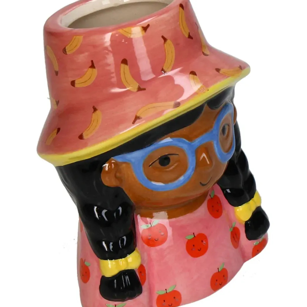 Faites entrer la bonne humeur dans votre déco avec ce cache-pot en dolomite multicolore en forme de petite fille !