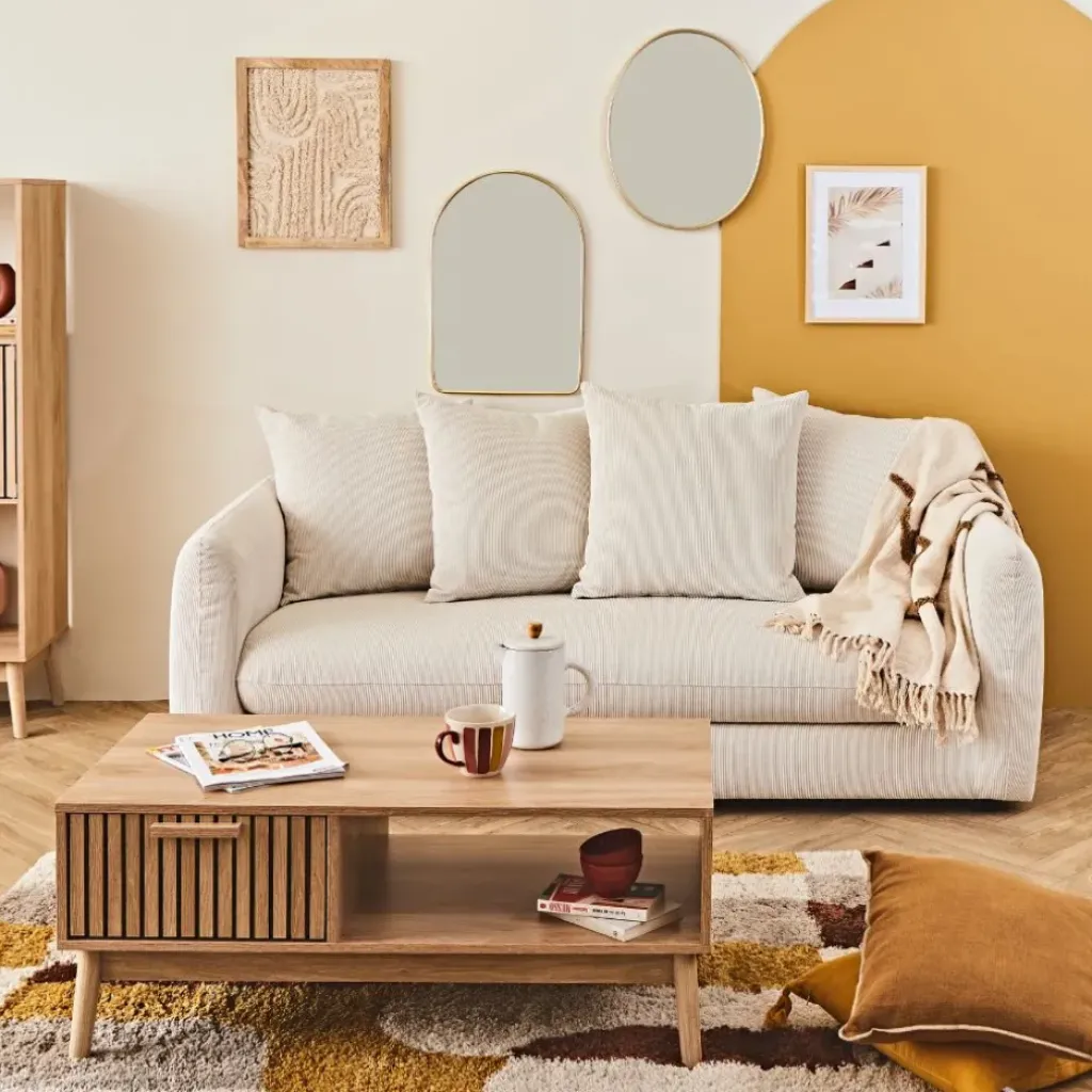 Son tissu effet velours côtelé et sa couleur beige apporteront une touche de modernité à votre intérieur.