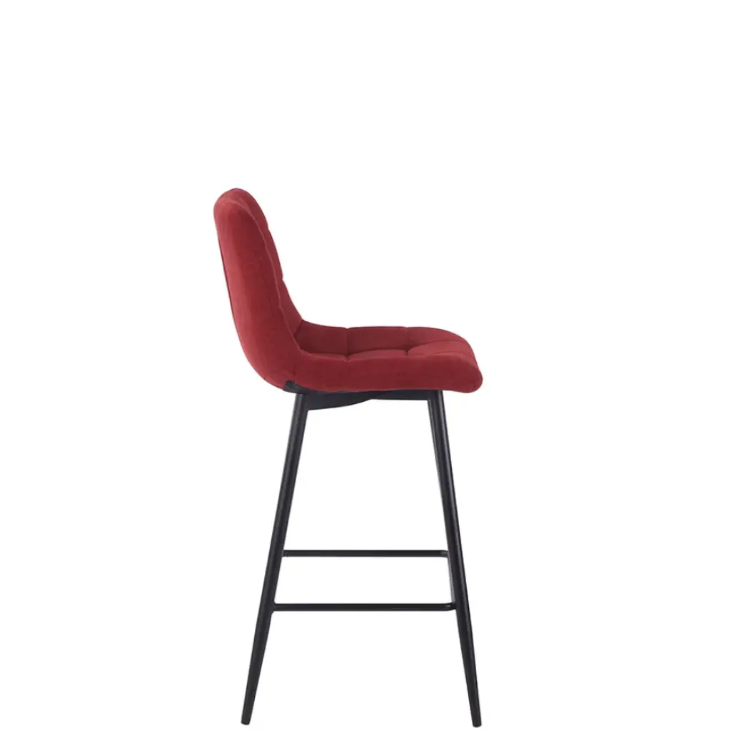 Apportez une touche vibrante et audacieuse à votre intérieur avec la chaise de bar Lilly en tissu matelassé couleur cerise.