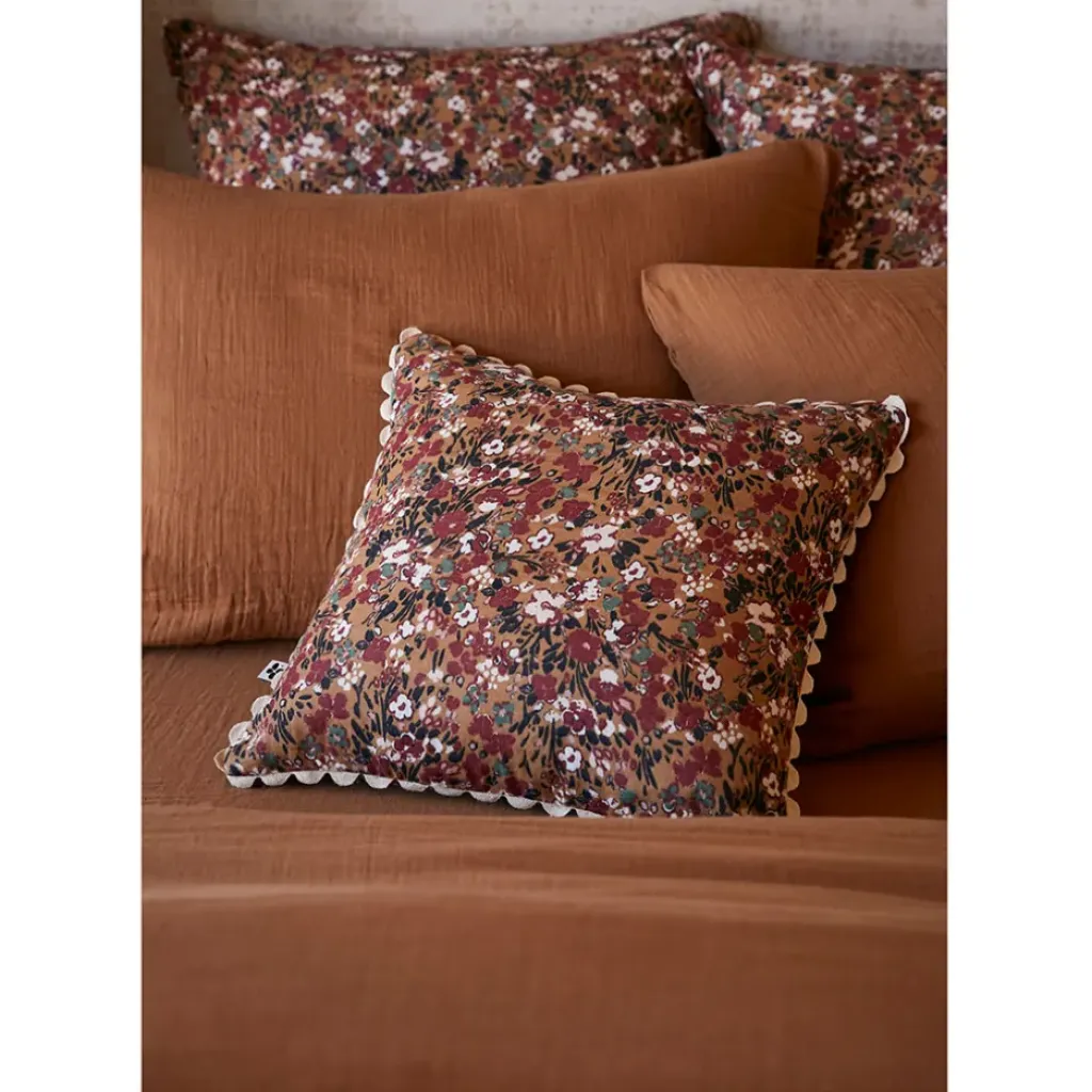 Fabrique de Styles Coussin déhoussable avec croquet en gaze de coton imprimée 40x40cm – Capucine* Coussins Et Housses
