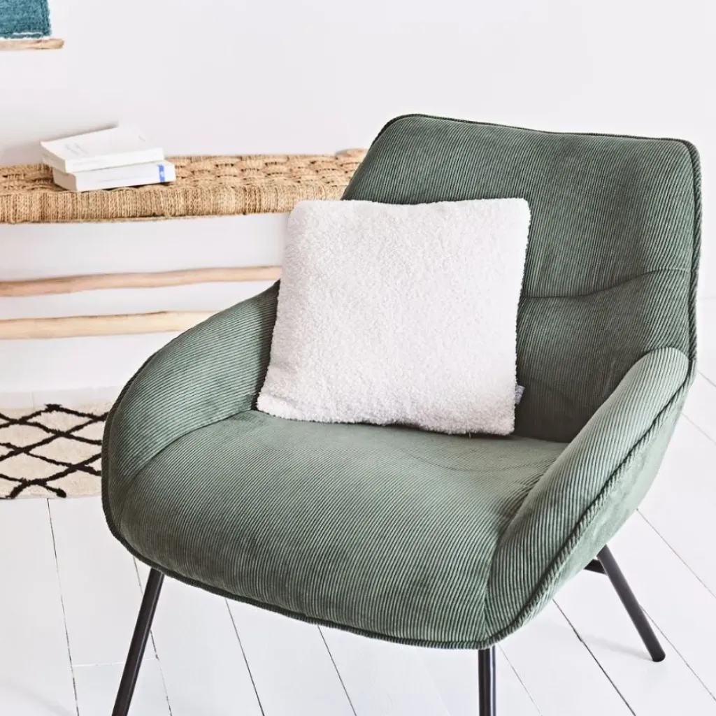 Ce coussin se distingue non seulement par sa texture bouclée et moelleuse, mais aussi par sa capacité à transformer une pièce en un véritable cocon de bien-être.