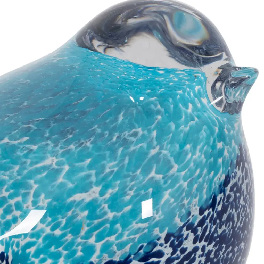 Le corps du moineau est en verre bleu, apportant une note de fraîcheur et de tranquillité à votre espace.
