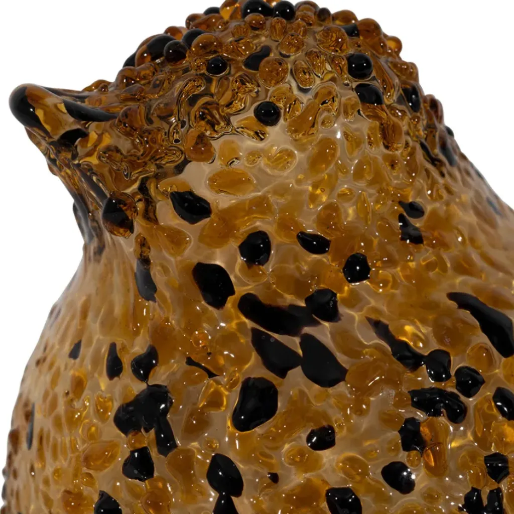 Ajoutez une touche artistique et unique à votre intérieur avec cet adorable moineau en verre aux nuances d’ambre et de noir.