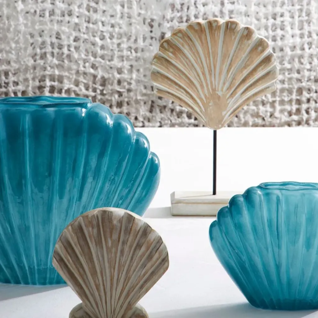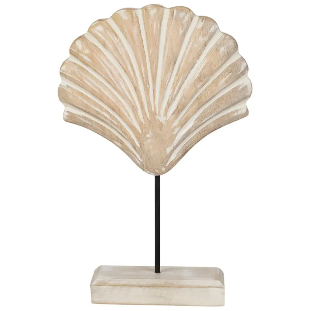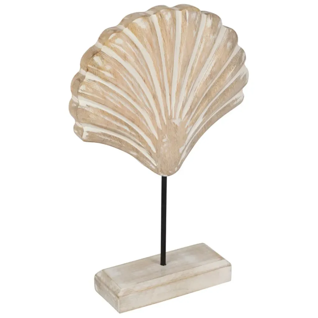 Ajoutez une touche de charme à votre intérieur avec cette magnifique décoration Saint-Jacques sur pied en manguier et fer blanchi – Amarres.