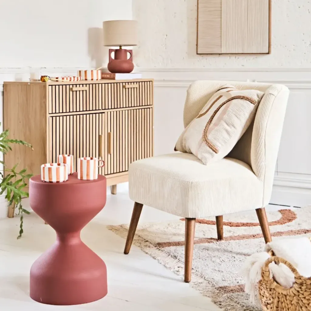 Découvrez notre fauteuil en velours côtelé écru Eleonor, du mobilier qui allie confort et design.