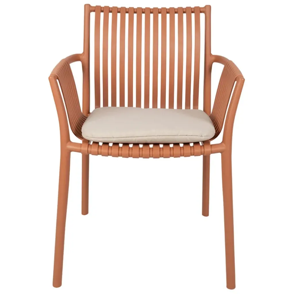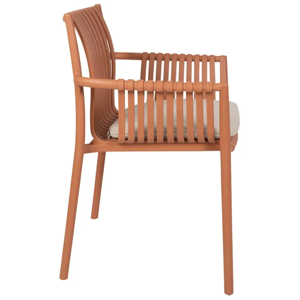 Découvrez le fauteuil extérieur Lumi en terracotta, un ajout élégant et moderne à votre espace extérieur.