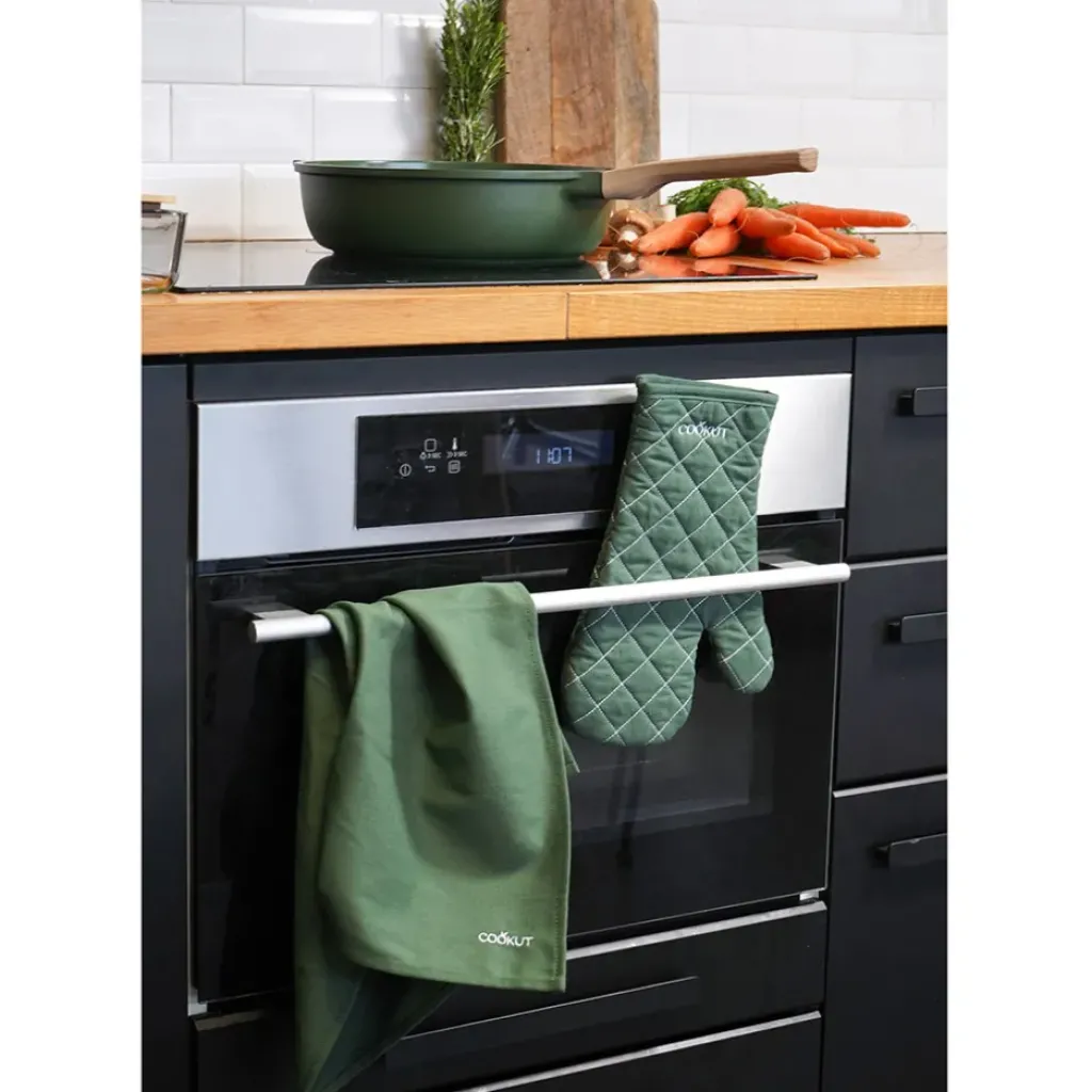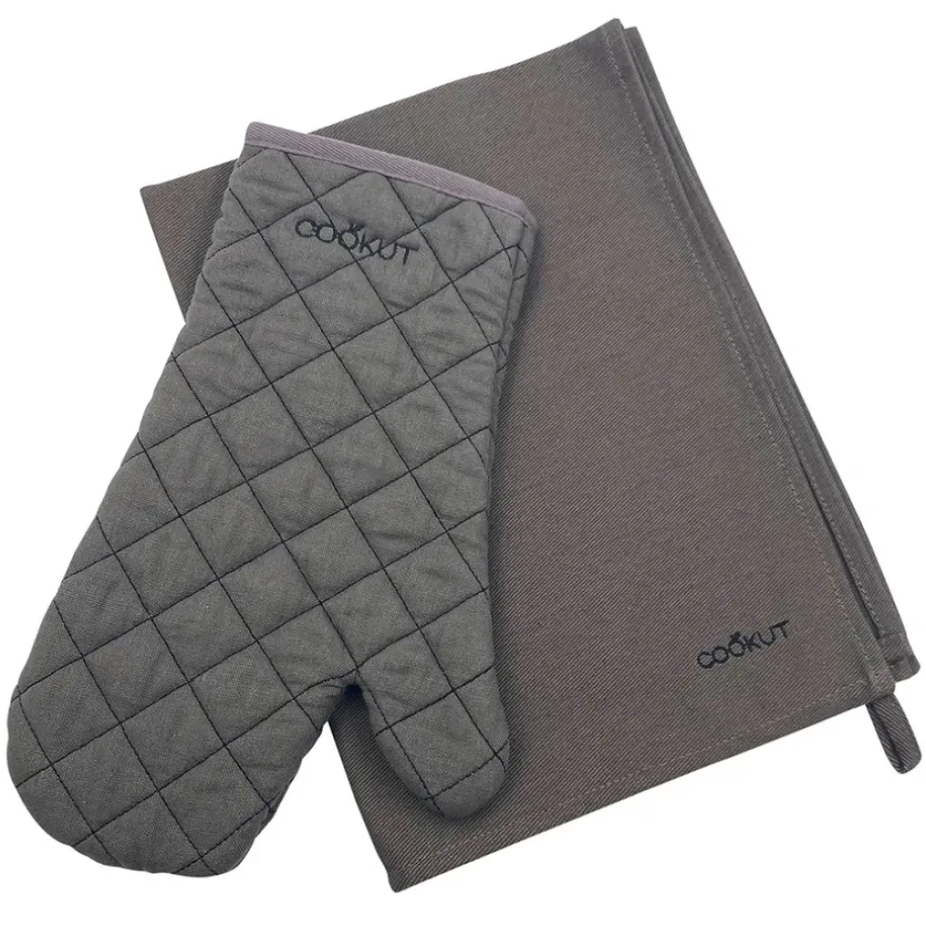 Apportez confort et praticité à votre cuisine avec ce set de gant et torchon en coton épais Moka.