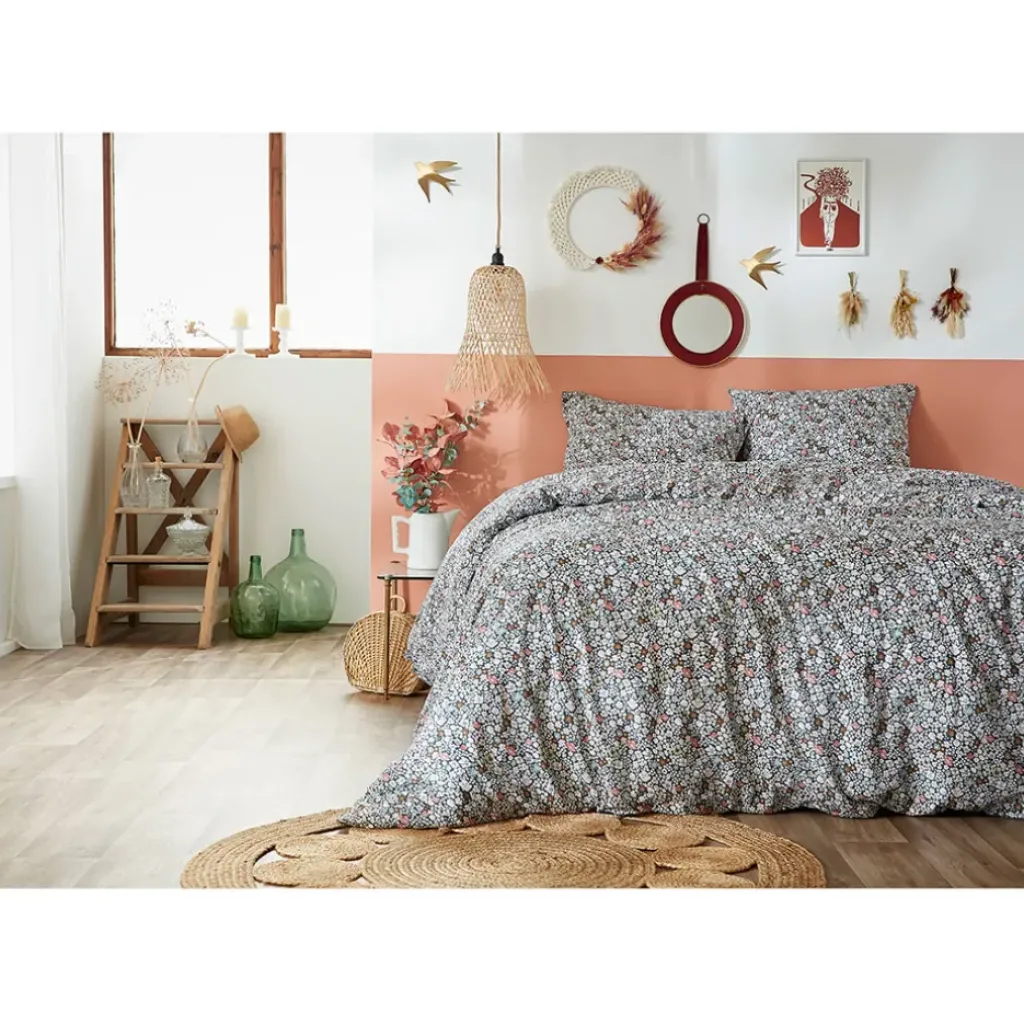 Découvrez la parure de lit Malia 240x220cm en coton imprimé, l’accessoire incontournable pour rehausser votre chambre à coucher. Parure composée d’une housse de couette 240×220 cm et de 2 taies d’oreiller 60×60 cm.