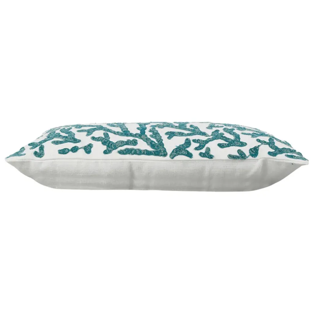 Naviguez vers un décor marin élégant avec « Estran », une housse de coussin en coton de 50x30cm, arborant un splendide turquoise évoquant les eaux cristallines.