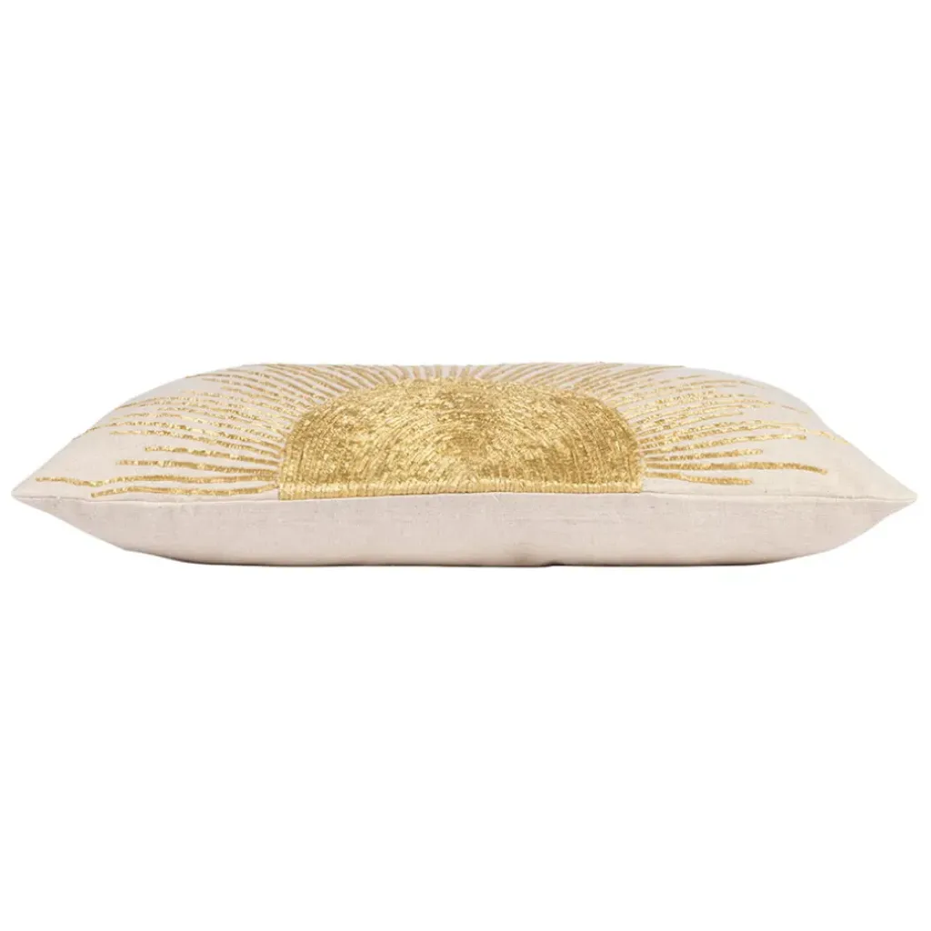 Découvrez notre magnifique coussin en coton et lin blanc de 50x30cm, orné d’un motif ensoleillé.