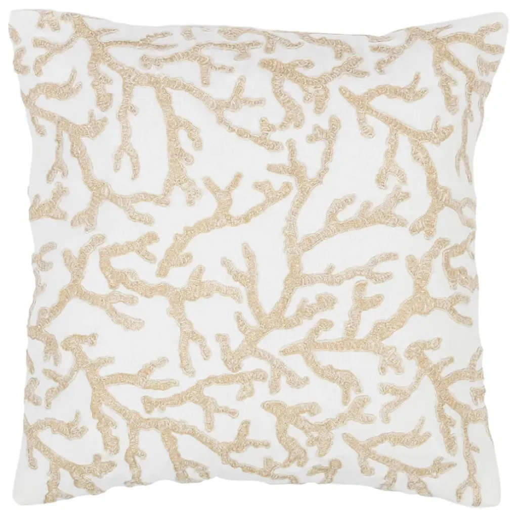 Ajoutez une touche de fraîcheur à votre décoration intérieure avec cette housse de coussin motif corail blanc et beige.
