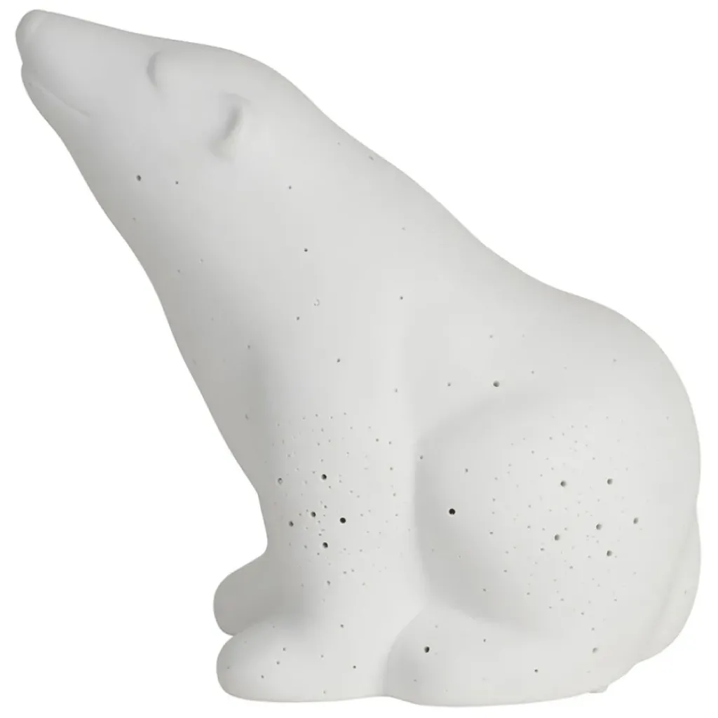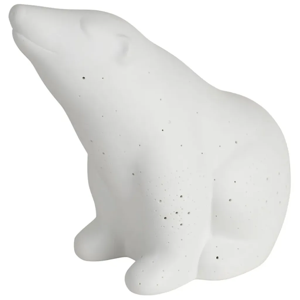 La porcelaine blanche sublime la silhouette gracieuse de l’ours polaire, créant une atmosphère douce et apaisante.