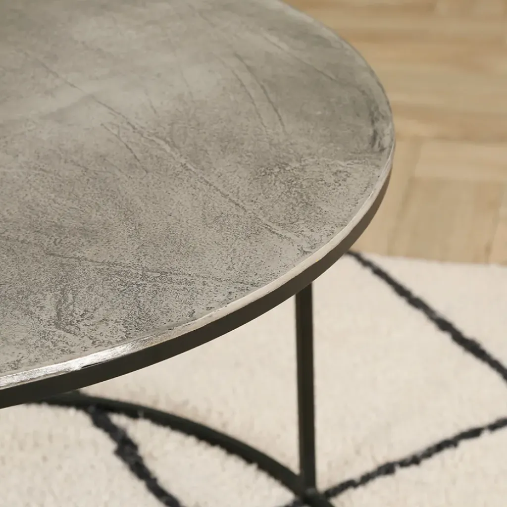 Sublimez votre salon avec la table basse gigogne en aluminium et fer argenté Felia, pour un intérieur classique chic.
