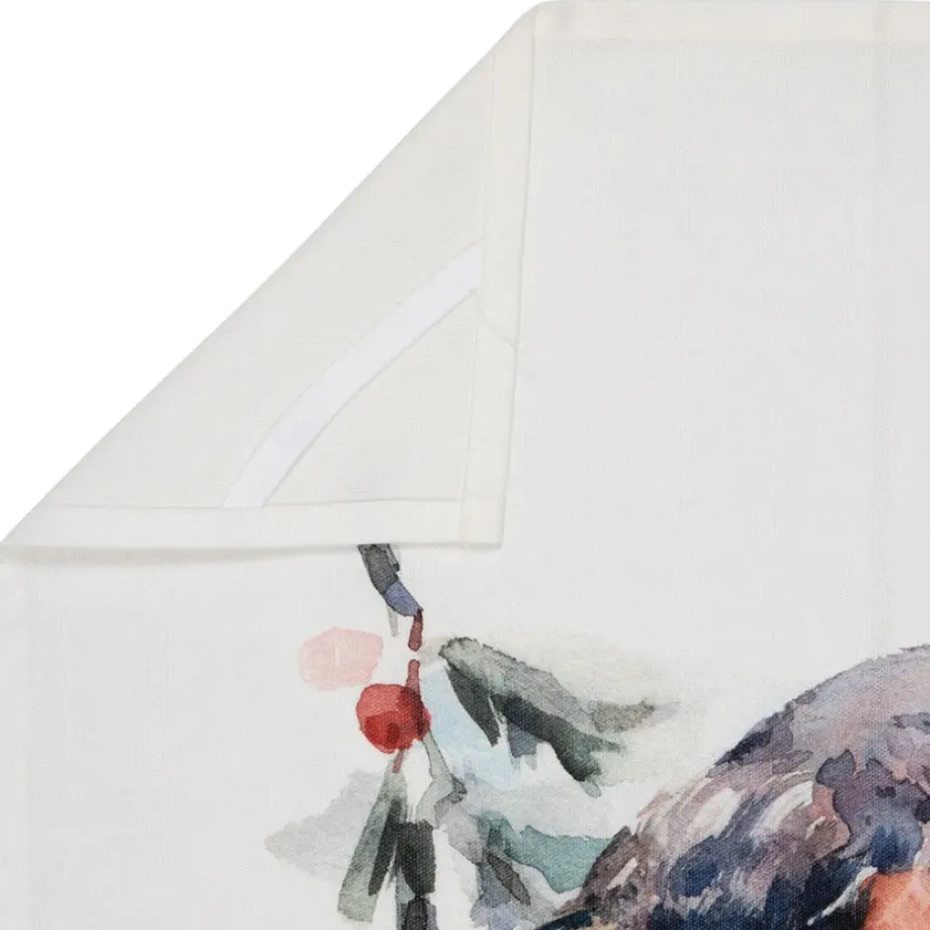 Offrez-vous l’essentiel de la cuisine avec ce lot de deux torchons en coton blanc signés Rouge-Gorge.