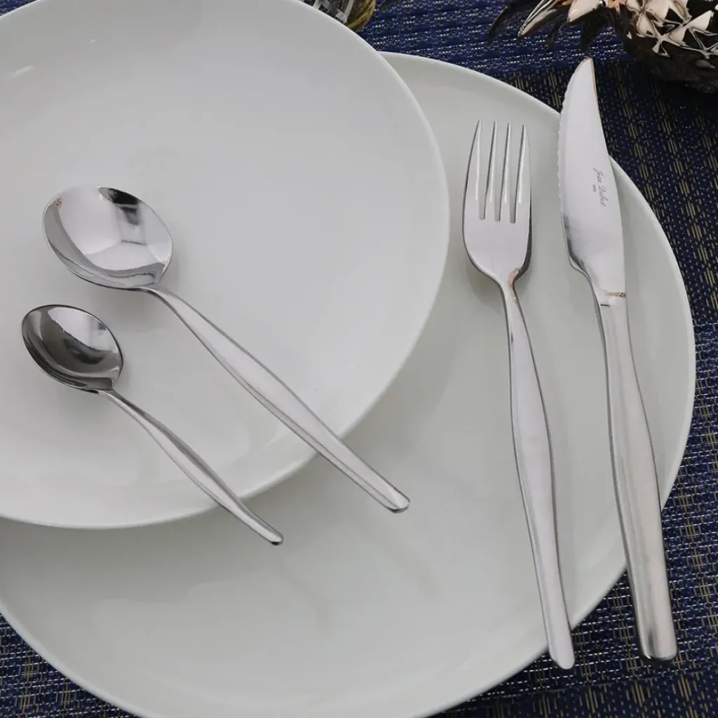 Découvrez la nouvelle manière de sublimer vos repas avec notre ménagère 24 pièces en acier inoxydable argent.
