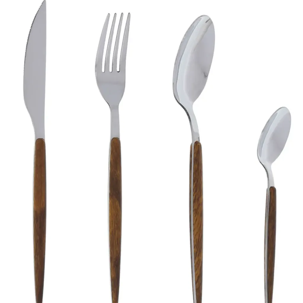 Découvrez l’ensemble de couverts Amsterdam, une ménagère de 24 pièces qui apportera une touche naturelle et moderne à votre table.