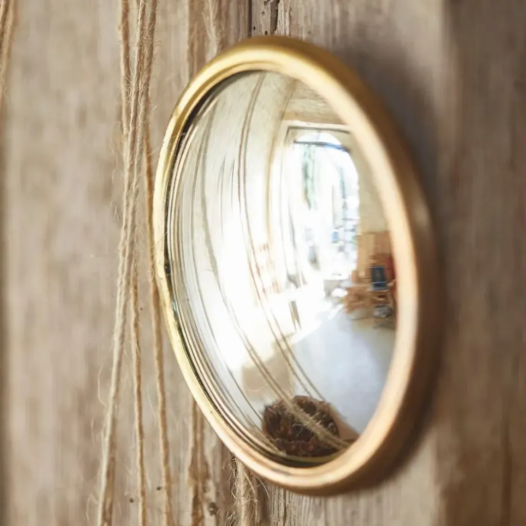 Découvrez notre miroir convexe en laiton doré, un accessoire déco aussi pratique qu’esthétique.