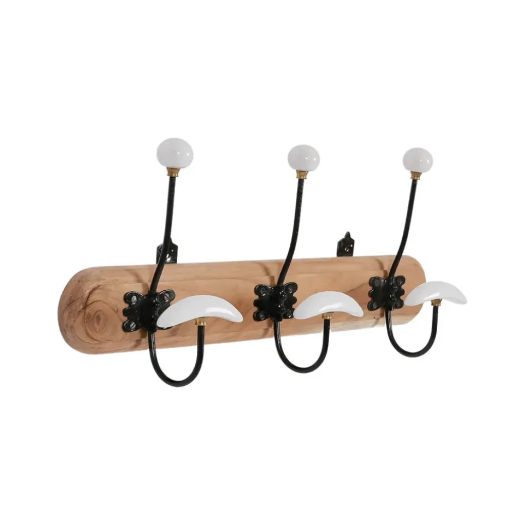 rCette patère est l’accessoire indispensable pour optimiser l’espace de votre maison.Acacia + fer + céramique