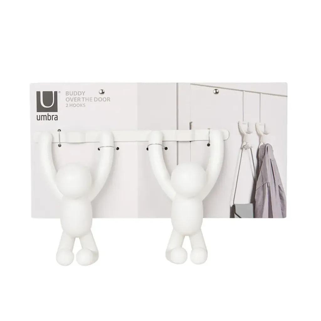 Découvrez une manière ludique et fonctionnelle de suspendre vos objets avec la patère buddy en forme de bonhomme blanc.