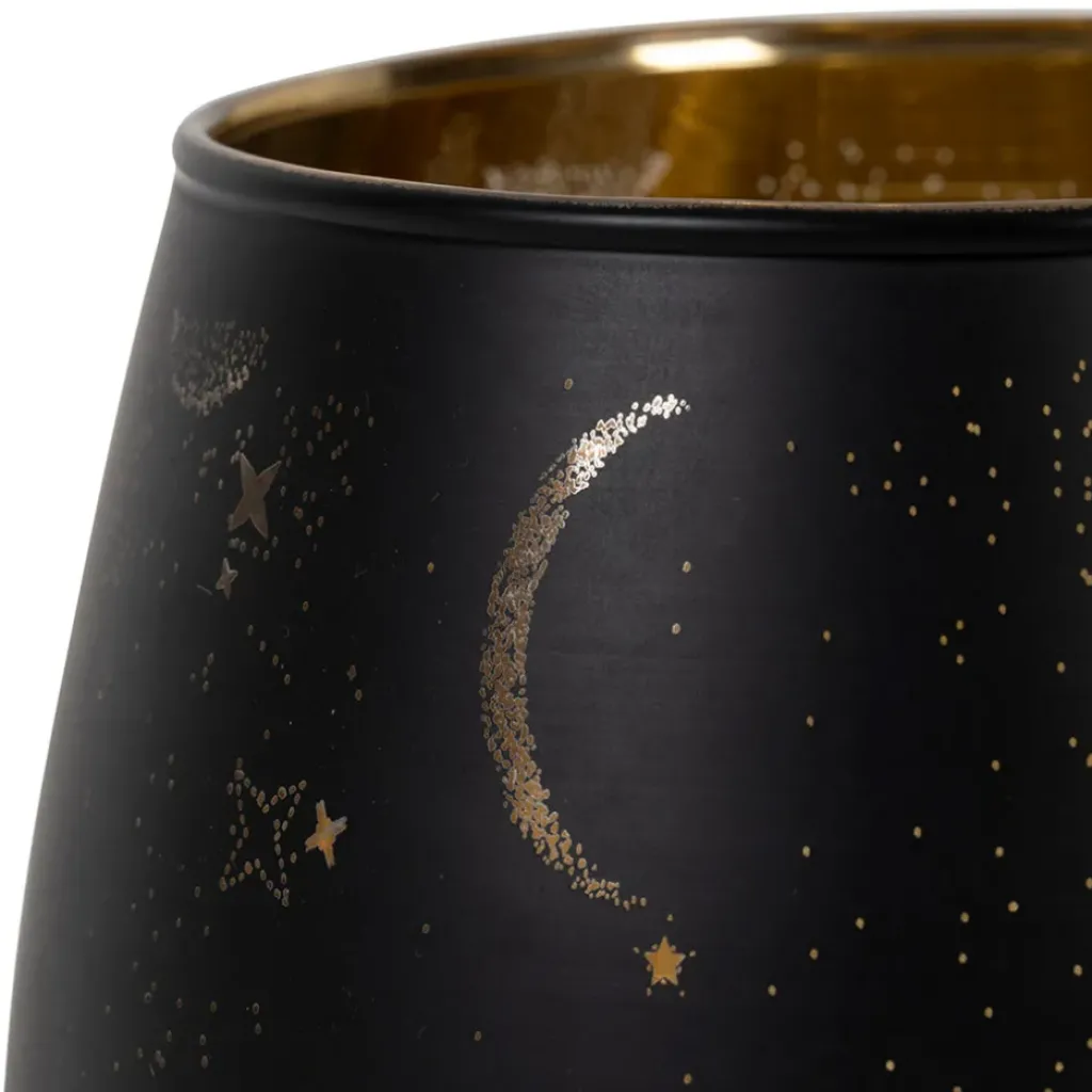 Découvrez le parfait compagnon pour illuminer et sublimer votre intérieur : le photophore en verre noir mat et doré.
