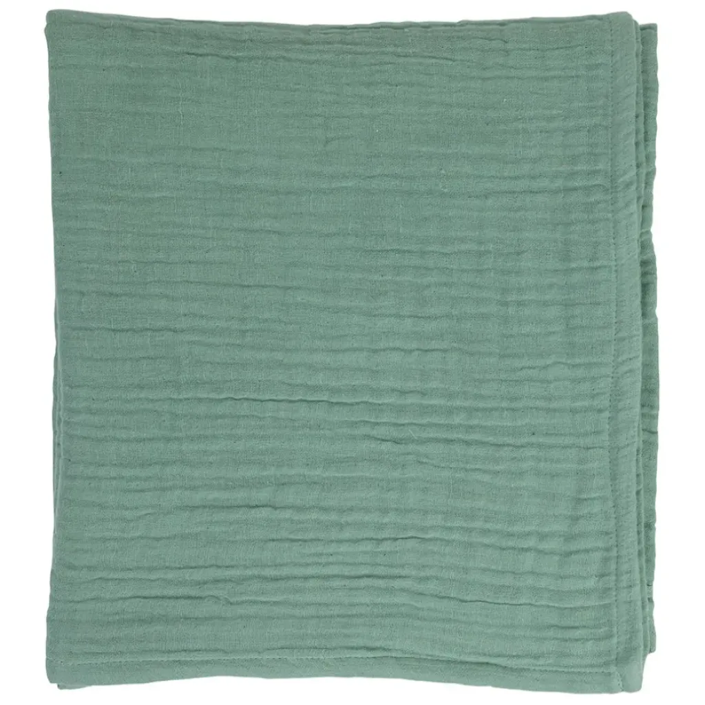 Découvrez le confort et la douceur avec notre magnifique plaid en gaze de coton de couleur sauge, mesurant 120×100 cm.