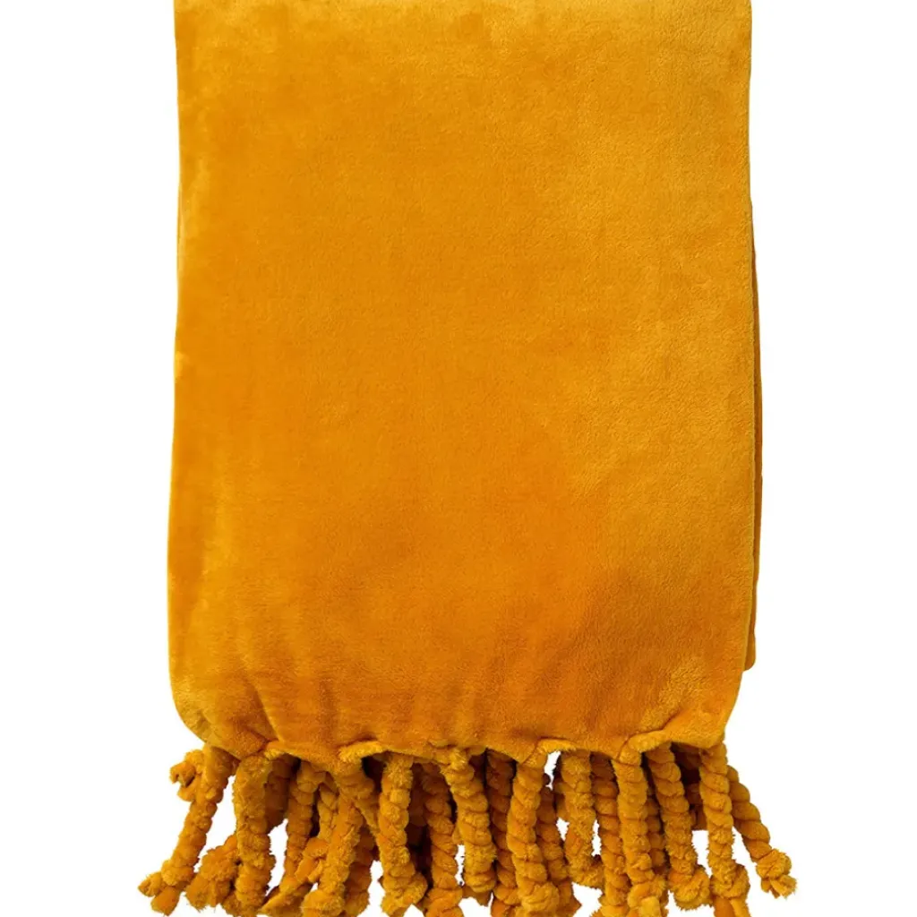 Ce jeté de couleur « golden glow moutarde » illumine n’importe quelle pièce tout en ajoutant une nuance moderne et accueillante.