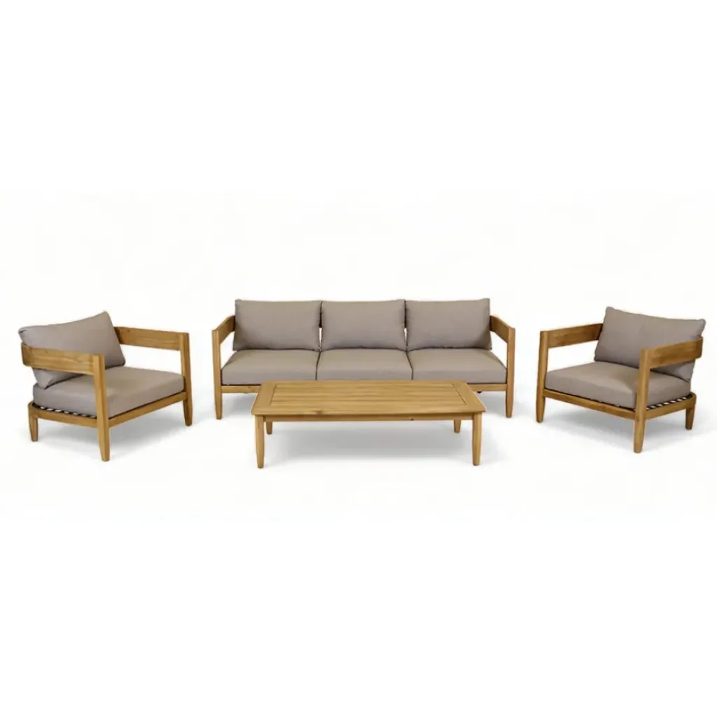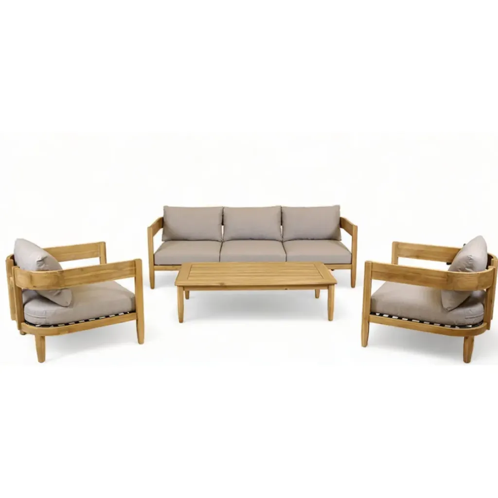 Découvrez le salon de jardin en acacia naturel et gris Borneo, idéal pour profiter de votre extérieur en toute élégance.