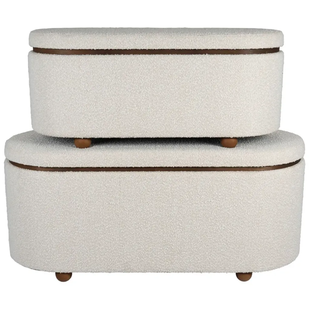 Transformez votre espace de vie avec cet ensemble de deux bancs coffre en tissu et pin blanc.