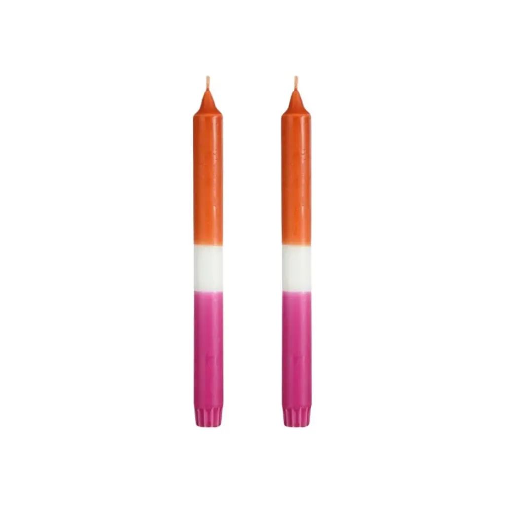 Transformez l’ambiance de votre intérieur avec ce set unique de deux bougies chandelier orange.