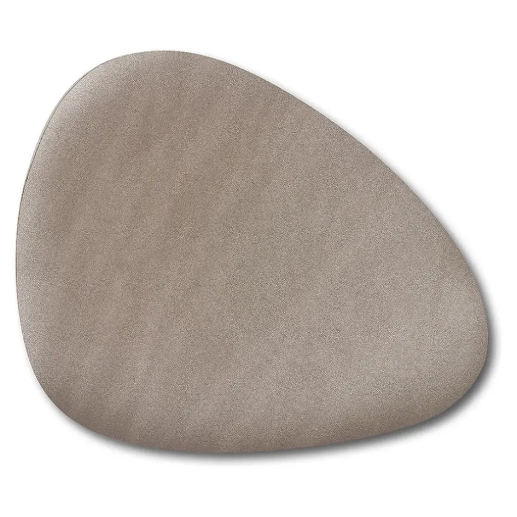 Découvrez notre set de table effet cuir taupe métallique en forme de galet, une pièce à la fois pratique et esthétique pour votre table à manger.