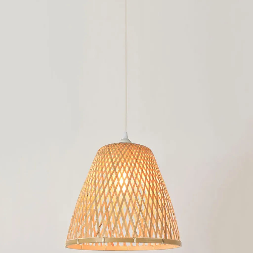 Suspension en bambou naturel conique de 30cm de longueur, idéale pour apporter une touche naturelle et élégante à votre intérieur.Rotin + fer