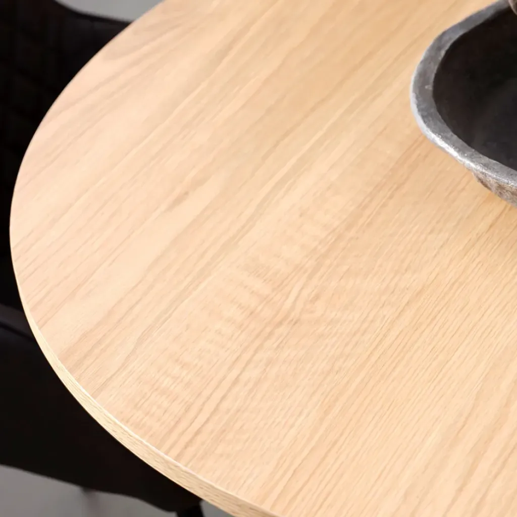 Découvrez l’atout charme de votre salle à manger avec cette table ronde en placage chêne naturel de 120 cm.