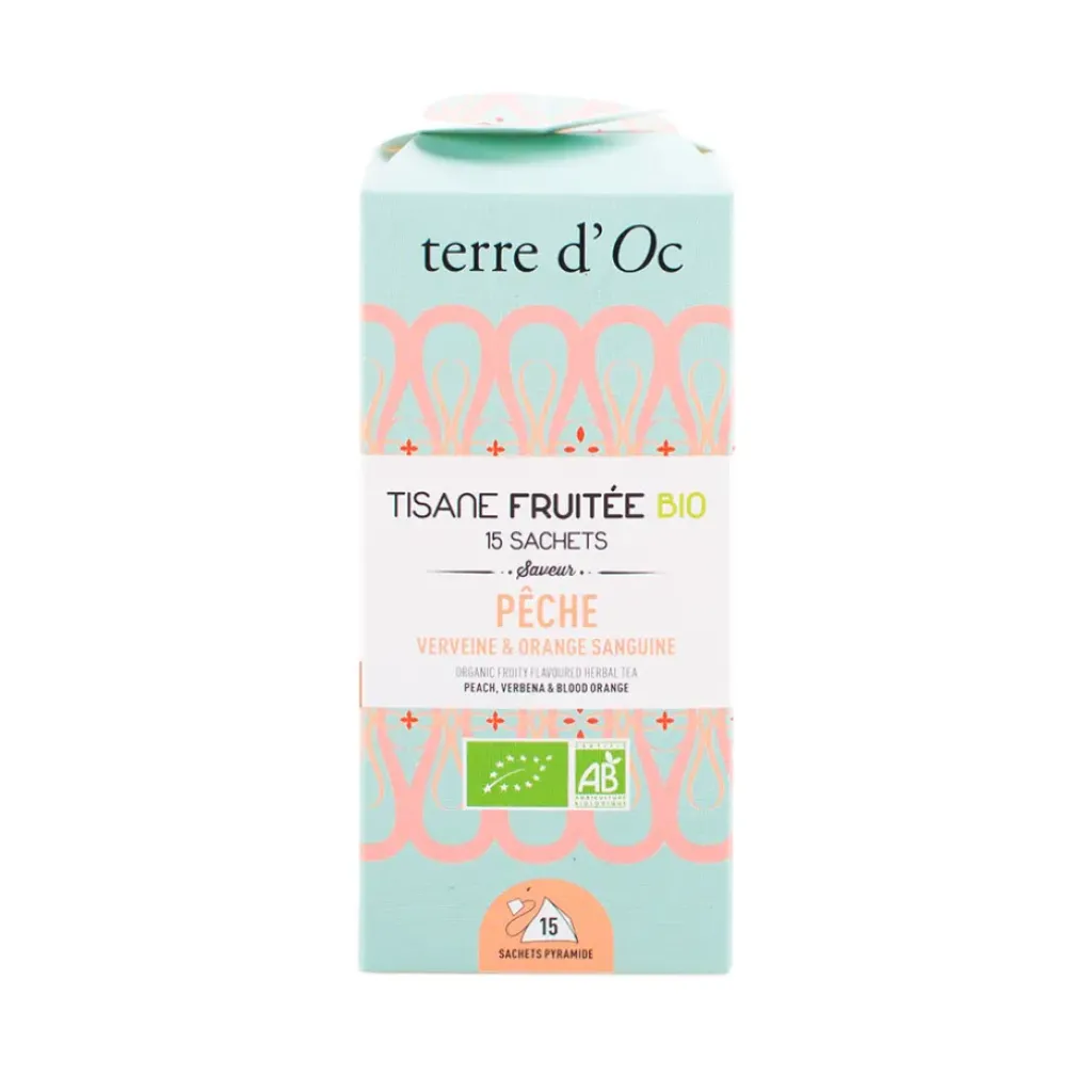 Une infusion ensoleillée à la saveur fruitée et juteuse de pêche mariée à la vivacité des notes fraîches et zestées de l’orange sanguine et de la verveine. Plantes, fleurs et morceaux de fruits bio. Sans théineSucre, sirop de glucose, acidifiant : acide citrique, arôme naturel : fraise, colorants naturels : E100, E120, E160a, E163, spiruline concentrée. Peut contenir des traces de blanc d’œuf.