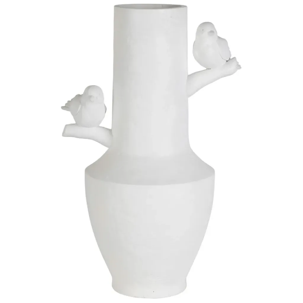 Découvrez le vase moineau en résine blanche, d’une hauteur de 35,5 cm, véritable bijou pour sublimer votre intérieur.