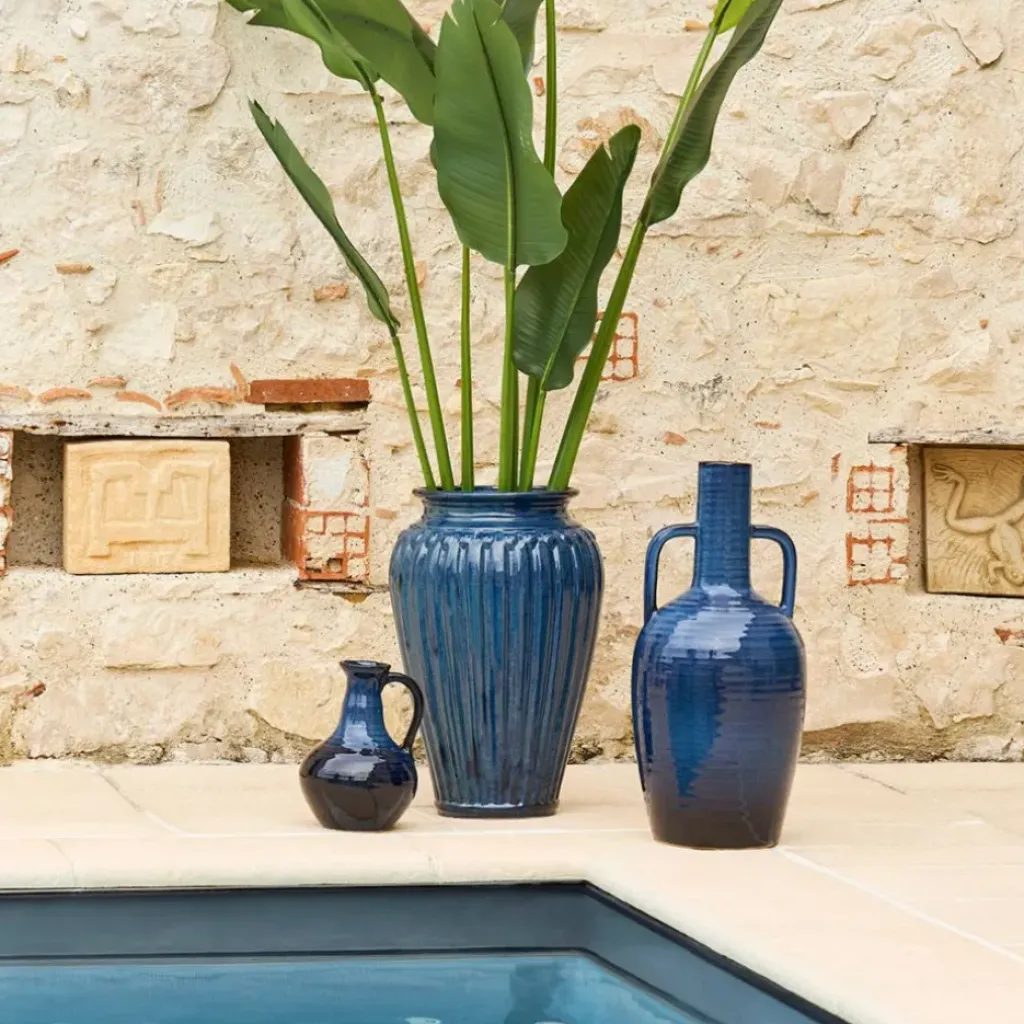 Ajoutez une touche de fraîcheur à votre intérieur avec ce vase pichet en grès aux nuances profondes d’indigo.