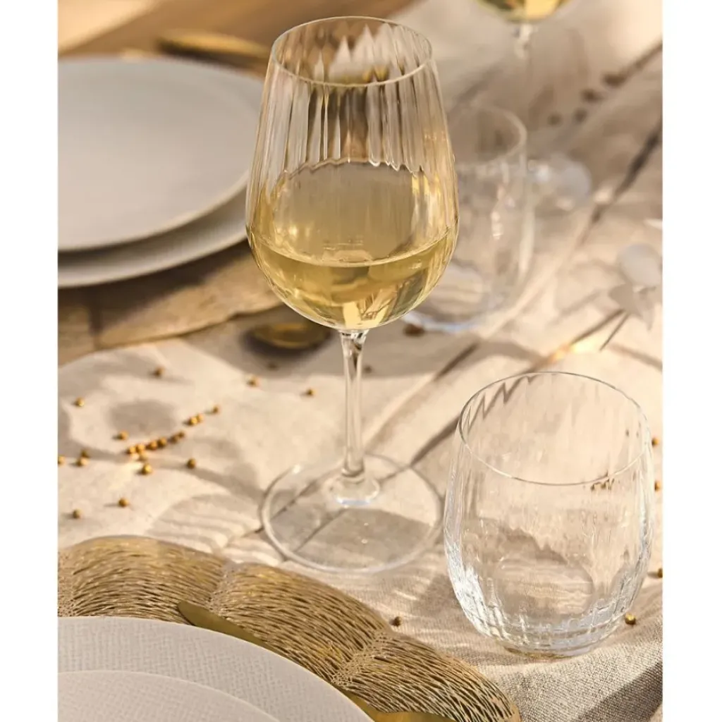 La collection de verres à vin « Waterfall » en cristallin, avec son design légèrement ondulé, incarne le summum du luxe dans l’art de la table.